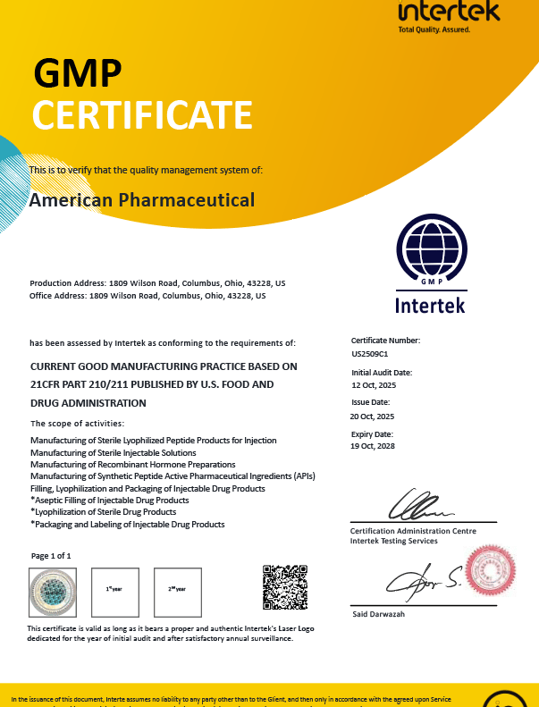 American Pharmaceutical operates under established pharmaceutical manufacturing standards in the United States. Our compliance framework is designed to ensure product safety, manufacturing consistency, and full regulatory alignment at every stage of production.